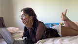 Petite Indian MiaZ masturbates to hentai