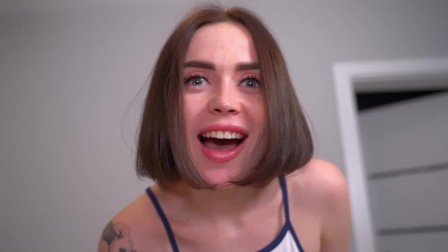 Girl in sneakers with a big juicy ass sucking insatiably and then riding on cock