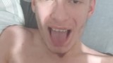 Skinny horny teen shoots a load in his throat and spits some out