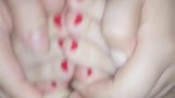 CUTE TEEN FOOTJOB/HANDJOB RED TOES PART 2
