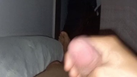 Chico Cachondo Masturbándose Mientras Sostiene TU Cabeza y Te Hace Mirar Hasta que Se Corre