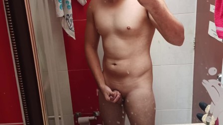 derramo todo mi semen en mis manos con mi pene mientras celebraba navidad